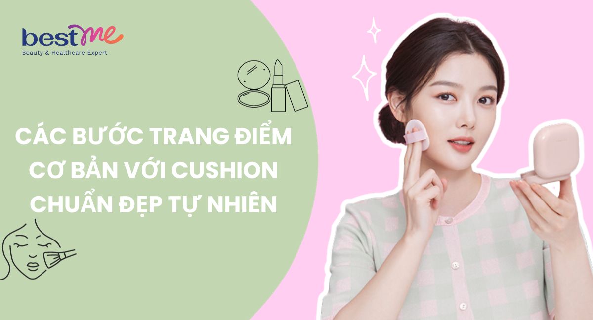 Cushion đang là một trong những sản phẩm làm đẹp rất được yêu thích hiện nay. Với chất kem lỏng, mịn cùng miếng mút tiện lợi đi kèm trong chiếc hộp nhỏ gọn, dễ mang theo - cushion đã giúp cho quá trình trang điểm của nhiều cô gái trở nên dễ dàng, nhanh chóng hơn. Cùng Bestme khám phá các bước trang điểm cơ bản với cushion chuẩn đẹp tự nhiên nàng nhé!