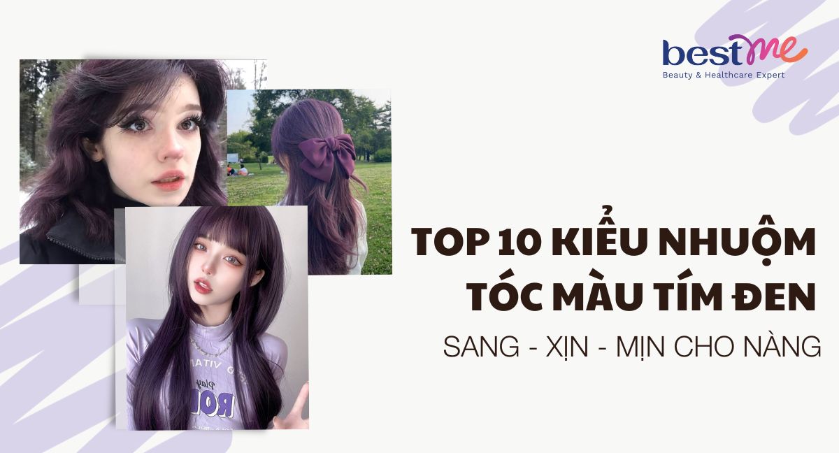 Nhuộm tóc tone màu nổi bật ngày càng được giới trẻ ưa chuộng, trong đó không thể bỏ qua tóc màu tím đen. Đây là màu nhuộm thuộc tone trầm nên có thể phù hợp với nhiều độ tuổi khác nhau. Trong bài viết dưới đây, Bestme sẽ điểm qua 10 kiểu nhuộm tóc màu tím đen sang chảnh, nổi bật và thu hút ánh nhìn cho các nàng, cùng tham khảo nhé!